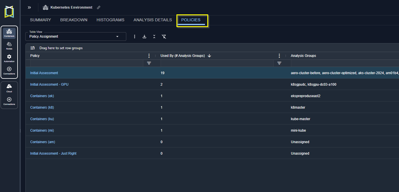 | Analysis Groups | The names of the analysis groups using this policy. |