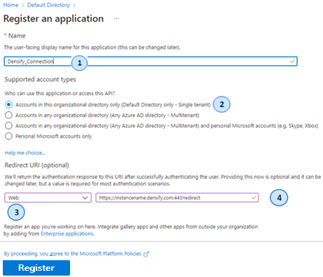 - In the Register an application pane, enter the following information: