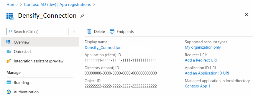 - Once you have completed the registration, you will be directed to the overview page for your new application registration.