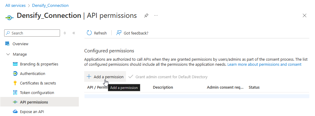 Configuring the API Permissions for the Connection