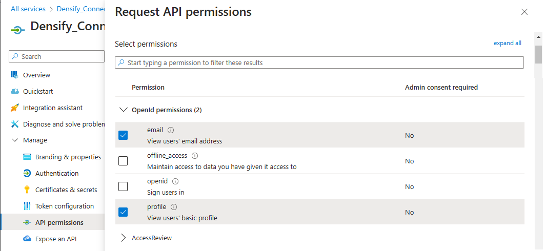 - Under OpenId permissions, select: