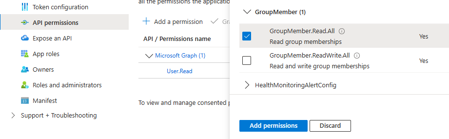 Figure: Configuring the API Permissions