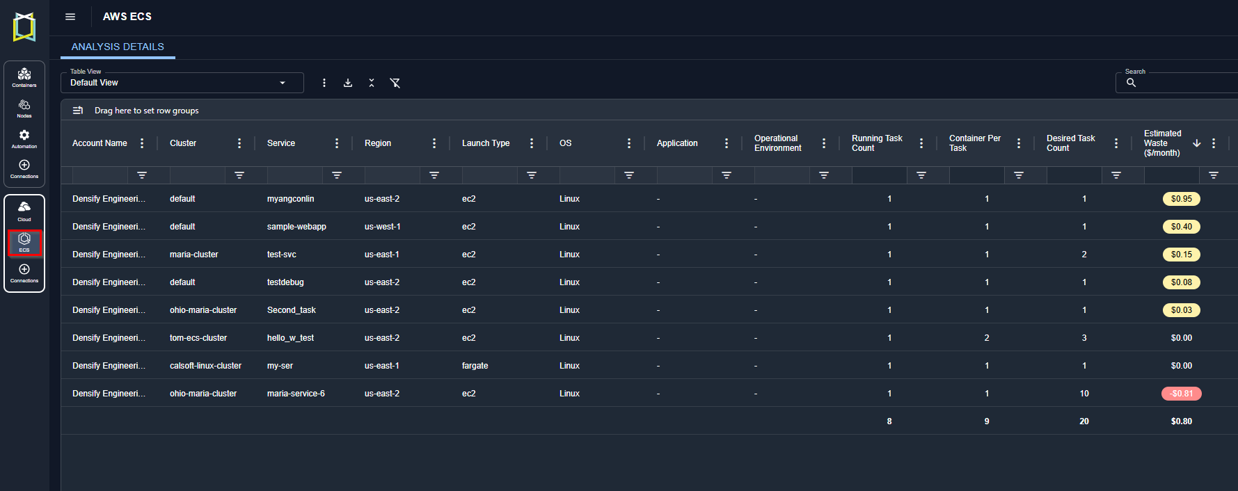 - The ECS button the left-hand menu only shows up if there is ECS data.